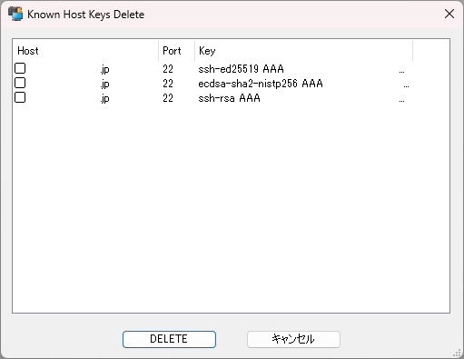 SSHで最初に接続した時に記録されるホスト鍵を確認・削除することが出来ます